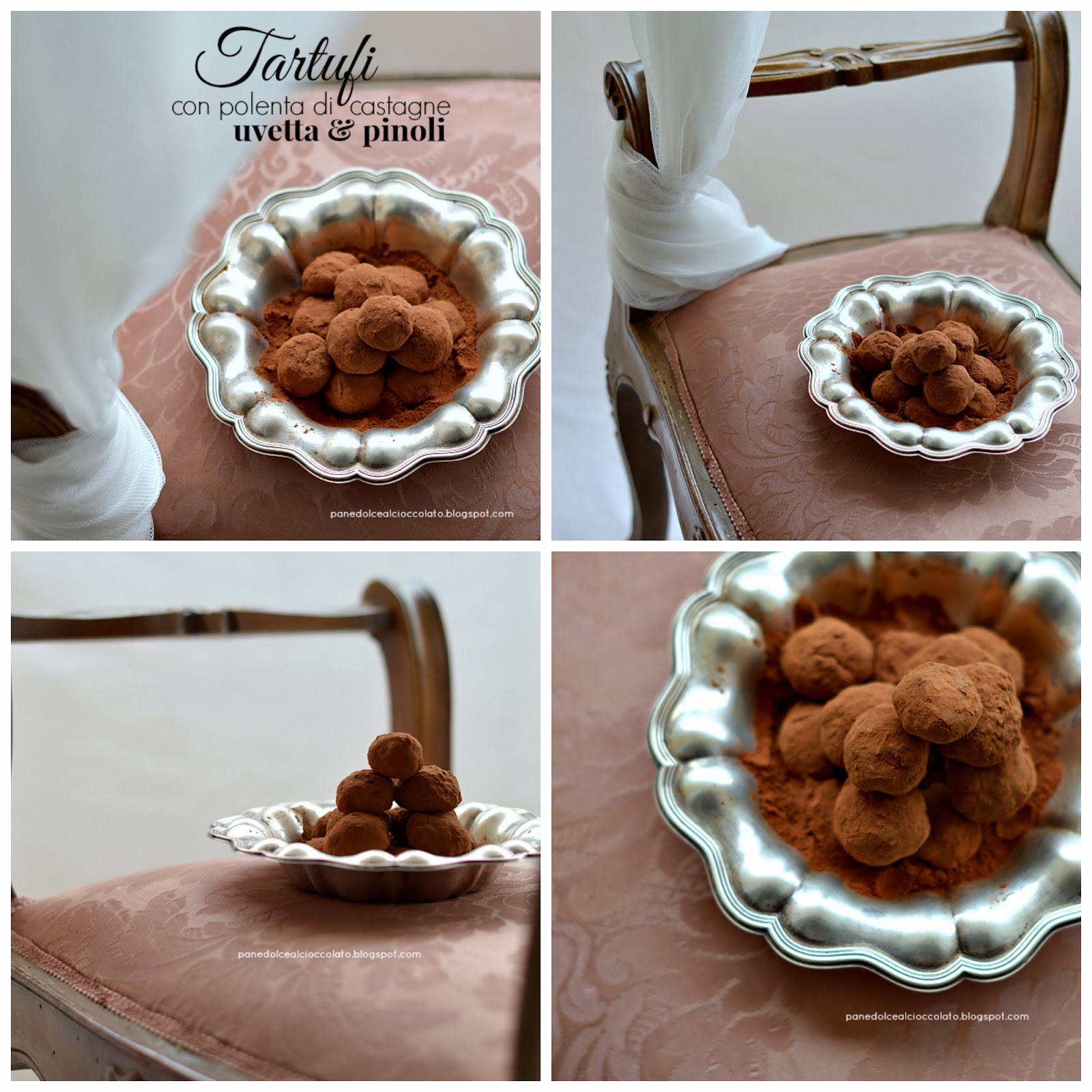 Caspita gabi, tu mi affianchi al tuo "esordio" ma mica va bene!!! Cioè hai proposto una rivisitazione della polenta di castagne, offrendo questo tartufi che appaiono così buoni e così ben coreografati dalle danze dei tuoi scatti!