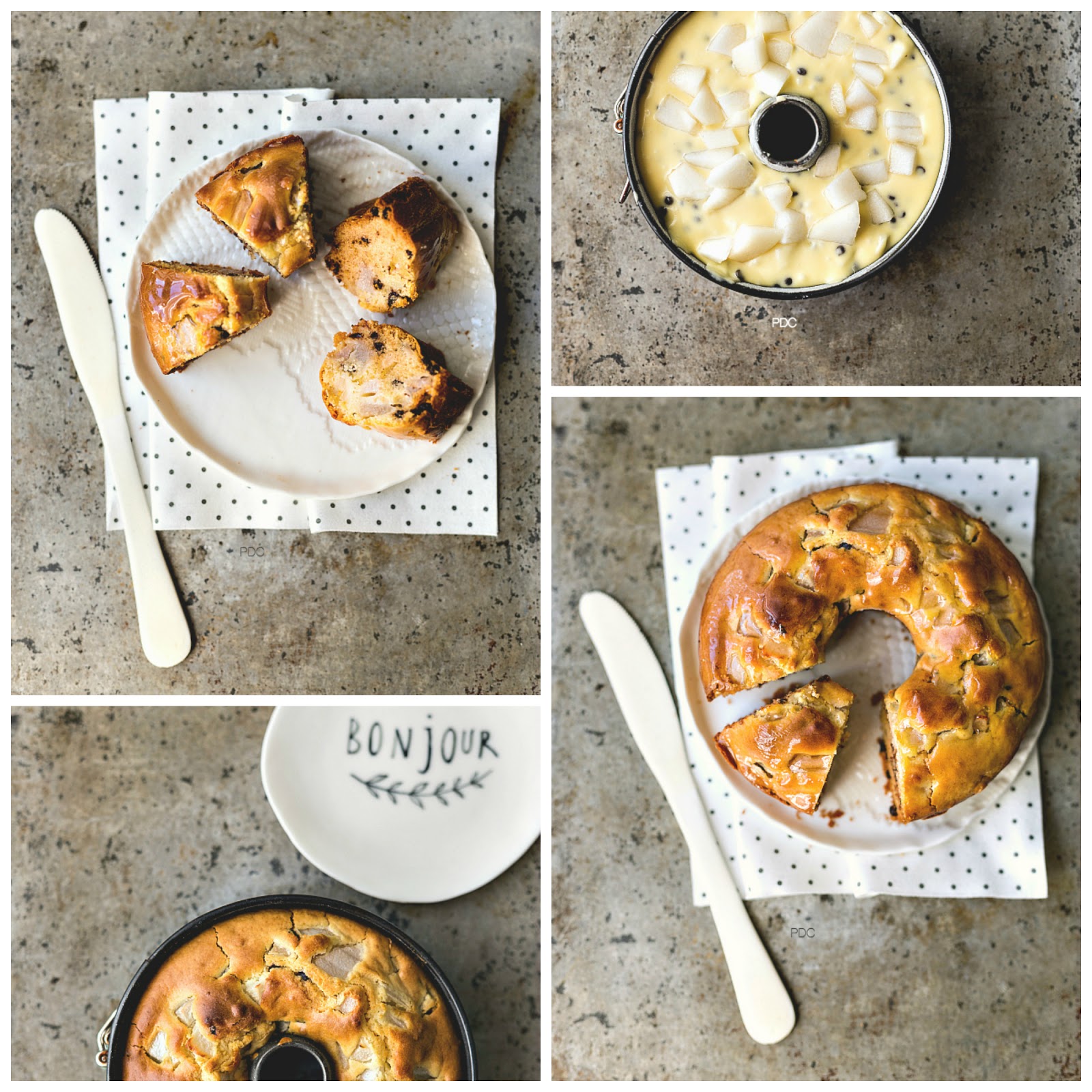 Per me la ciambella è la torta della nonna, la prima torta che ho imparato a fare, lo stampo di latta malconcio dopo anni e anni di cotture… il profumo che invade la cucina… di torta buona che non vedi l'ora di mangiare. Guardare la tua mi ha riportato alla mente tanti bellissimi ricordi e poi questa versione con pere e cioccolato è cosi golosa mi piace tantissimo … voglio provarla al più presto! LA